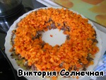 Далее слой измельченной моркови. Солим, перчим, майонезим!