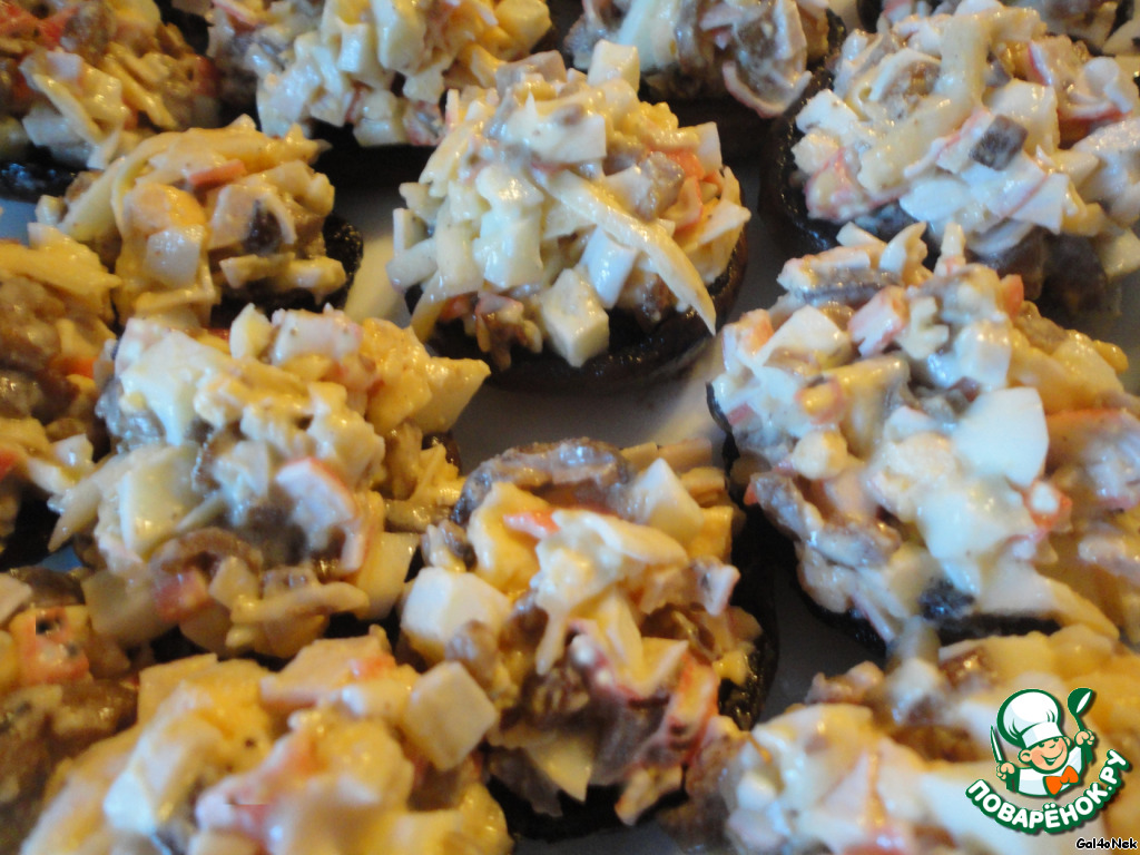 У меня же вариант холодной закуски, когда на "тарелочки" из грибов выкладывается холодный салатик. Правда может варианты рецептов не сильно удачные были добавлены.