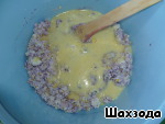 Влить взбитые яйца, хорошо перемешать.