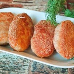 Курицу опалить, выпотрошить и промыть. Отделить вместе с кожей мякоть от костей, пропустить через мясорубку, затем добавить замоченный в молоке белый хлеб, вторично пропустить через мясорубку, положить немного разогретого масла, посолить и тщательно вымешать. Полученный фарш разделать в виде небольших котлет и обвалять в сухарях. Подготовленные котлеты обжарить на масле с обеих сторон на разогретой сковороде, примерно, в течение 4--5 минут, пока не образуется слегка подрумяненная корочка. После этого сковороду с котлетами поставить на 5 минут в духовой шкаф или накрыть крышкой и оставить на некоторое время на слабом огне.