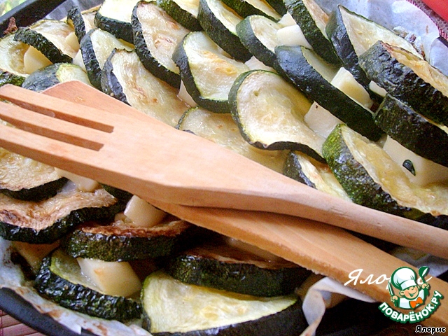 чтобы каждый кусочек сыра был перекрыт ломтиком цукини. -
