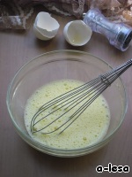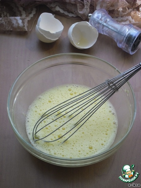 Яйцо размешать с солью и перцем, не взбивать а просто размешать до однородности,