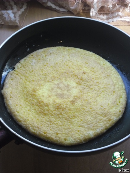 2 яйца, с солью, взбить в пышную, очень пышную массу.