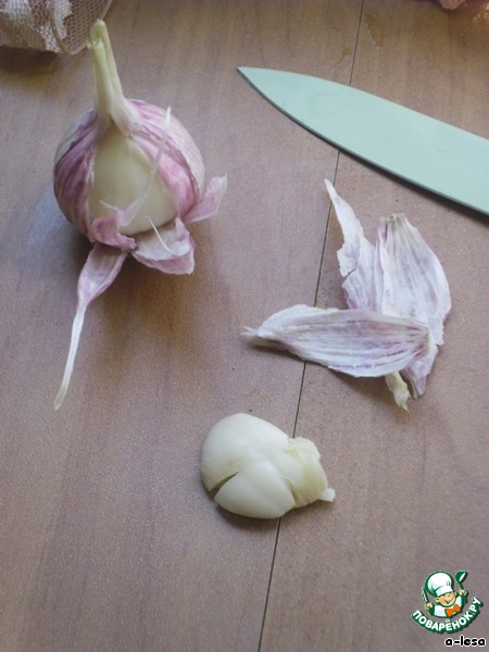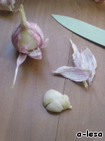 Зубок чеснока очистить и раздавить ножом (положить на зубок нож и придавить ).