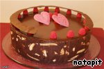 Собираем пирожное , заполняем любым наполнителем по вашему вкусу/ у меня шоколадный мусс с малиной/.