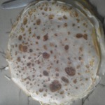 Наливаем тесто поварешкой на сковороду и наклоняем по часовой стрелке медленно, чтобы тесто плавно растеклось по всей поверхности. Ждем. Должны появиться маленькие пузырьки, и тесто нигде не должно остаться белым.
