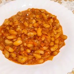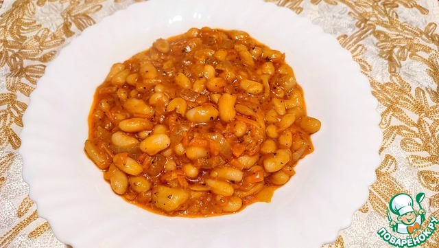 Протушить соус до загустения и залить фасоль. Дать фасоли протушиться 5 -10 минут.