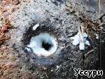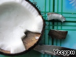 Через 5-6 ударов кокосик, не выдержав такого жестокого обращения, трескается поперек.