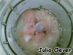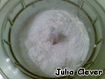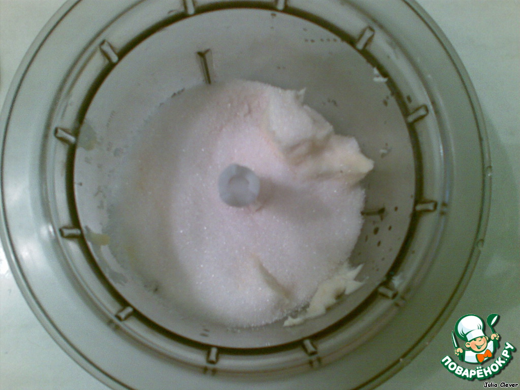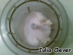 Растереть масло, сахар и ванильный сахар до однородной массы при помощи блендера - миксера.