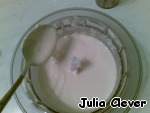 Когда тесто хорошо перемешаете, влейте молоко. Тесто должно получиться сметанообразным.