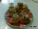Смажьте готовые кексы сиропом и украсьте. Я украшала персиками, киви и мятой .Можно орехами, любыми фруктами , ягодами, конфетами.. что Вашей душе угодно или ребенку))