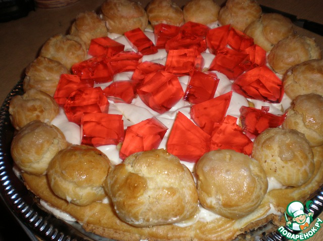 Сверху уложить эклеры. Вот и все, легендарный Гато Сент-Оноре готов!
