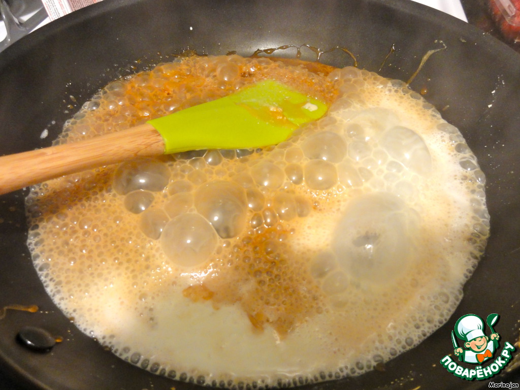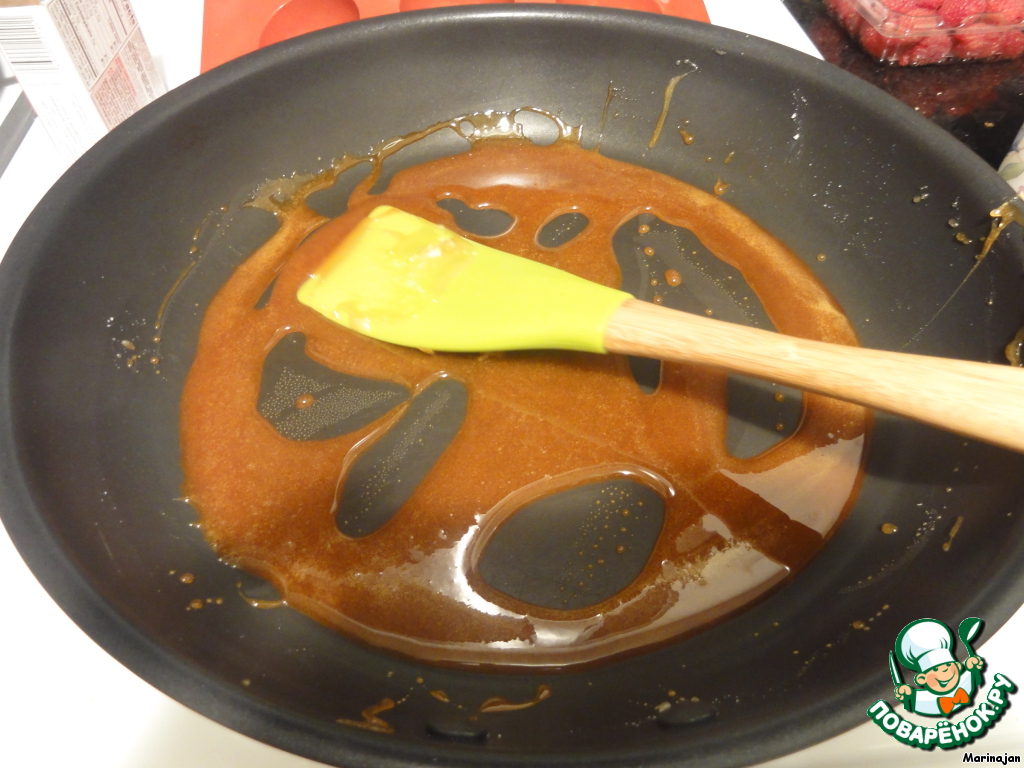 Сахар прожигаем на раскаленной сковородке, но будьте осторожны - он не должен пригореть!