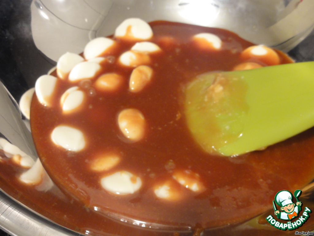 А потом заливаем этой массой белый шоколад и хорошенько перемешиваем.