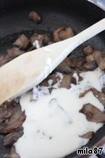 Грибы обжариваем на сливочном масле почти до готовиности, затем добавляем сливки и тушим до загустения.