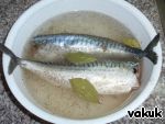 Чистим и моем рыбку и оставляем в маринаде (вода, соль, перец, лавровый лист)
