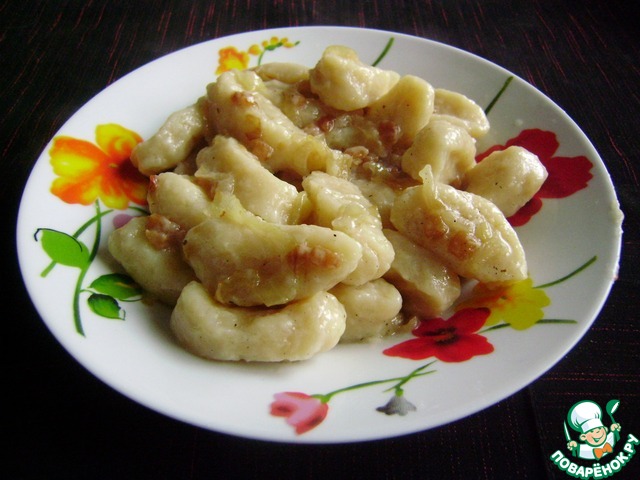 Если муку замесить пополам с творогом, получатся галушки с творогом или ленивые вареники!