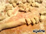 Делаем из теста колбаски и нарезаем небольшими кусочками. Можно варить, конечно, и так, но...