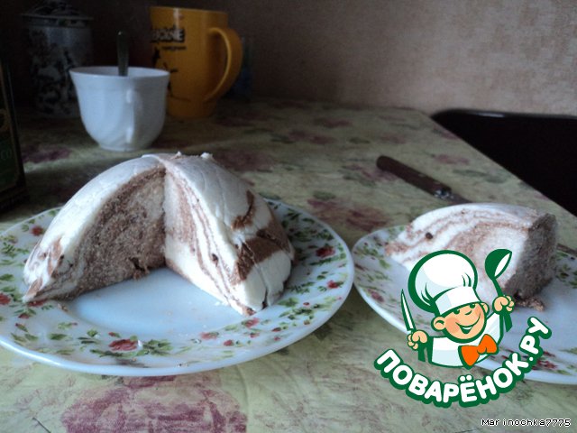 В креманки постелить пищевую пленку. Выкладываете поочередно ложку белой смеси и ложку шоколадной. Убираем в холодильник на пару часов и можно уже есть, но лучше всего оставить на ночь.