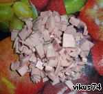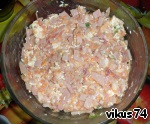Главный компонент блюда - куриное филе. Копчености и сыр нужны только для аромата. Если вы на диете, возьмите совсем немного копченостей - нежирного балыка, бастурмы, а куриного филе - побольше. Сыр тоже может быть диетическим - моцарелла, адыгейский, нежирный плавленный, достаточно твердый для натирания.