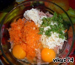 Добавьте два сырых яйца и немного нарезанной петрушки.