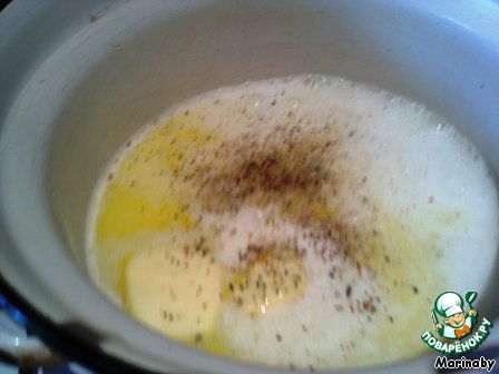 Нагреть в кастрюле молоко, добавить масло, довести до кипения. -
