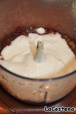 Когда ревень стал мягкий, выловила его из кастрюли и взбила в блендере с йогуртом.