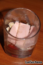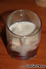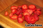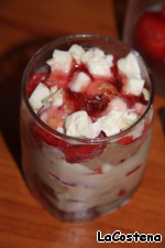 Последний слой - клубника, ванильное мороженное и джем из ревеня.
