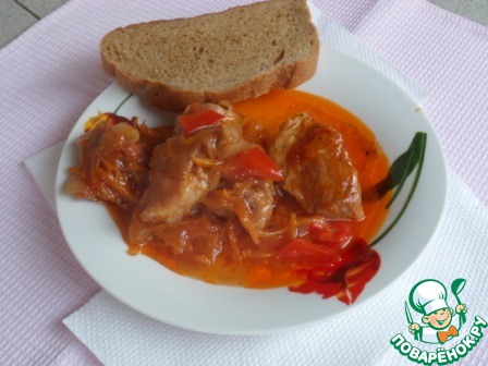 Такое блюдо готовят у нас на работе, вкуснятина необыкновенная. На оригинальность рецепта я не претендую, но просмотрела рецепты, такого не нашла, извиняюсь, если вдруг пропустила, ткните носом, удалю рецет.