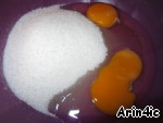 Яйца взбиваем с сахаром, добавляем какао и растопленный маргарин. -