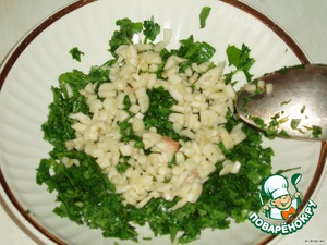 Смешать петрушку с чесноком.