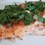 Выложить на рыбу чеснок с петрушкой, разровнять.
