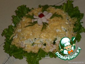 4 слой- яйца. Сверху посыпать сыром. Дать салату пропитаться.