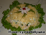 4 слой- яйца. Сверху посыпать сыром. Дать салату пропитаться.
