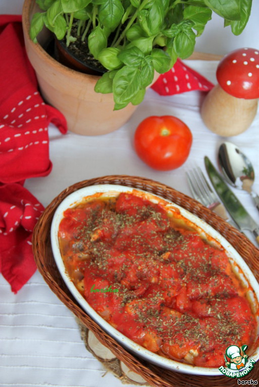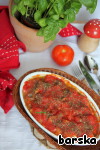 Полить томатным пюре и снова поставить в духовку на 30 минут.