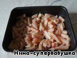Грудки обмыть, обсушить салфеткой и нарезать кубиками или брусочками.