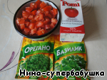 Помидоры нарезать кубиками. Вместо томатного пюре я взяла упаковку протертых томатов Pomi.