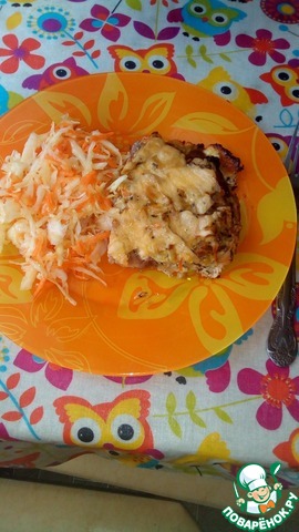 [+2]Получилось мясо с сырным омлетиком. На праздничный стол - не знаю... Мне кажется, слишком просто, а вот для домашнего отличного, сытного ужина на выходные или просто в будни - то, что надо!!! Спасибо!!!