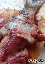 Обычно я пойманную рыбу, для более легкого отделения кожи, замораживаю, а в день, когда хочу фаршировать, рано утром достаю из морозилки и размораживаю немного, не надо, чтоб она раскисла. Но можно брать и только что пойманную рыбу. Чищу чешую, мою рыбку.