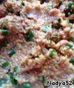 Перекрутить на мясорубке мясо от 3 рыб, лук, морковь, порубить зелень, добавить соль 2 ч. л, перец молотый, сырое яйцо, смешать с остывшей кашей. Т. е. сделали фарш для начинки.