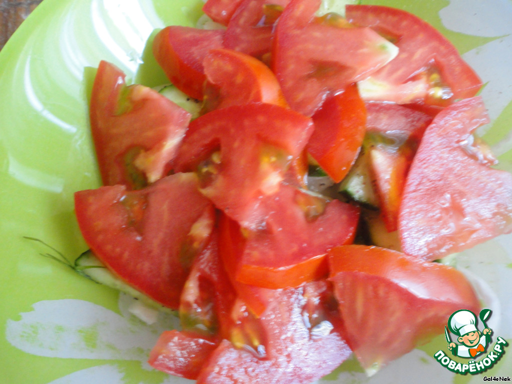 Свежий огурец (пардон, не сфоткала). Помидор.