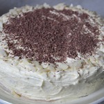 Обсыпала крошками бока. Получились очень красивые желтые крошки на фоне белого крема. Верх торта я при помощи кофейного сита посыпала какао-порошком.