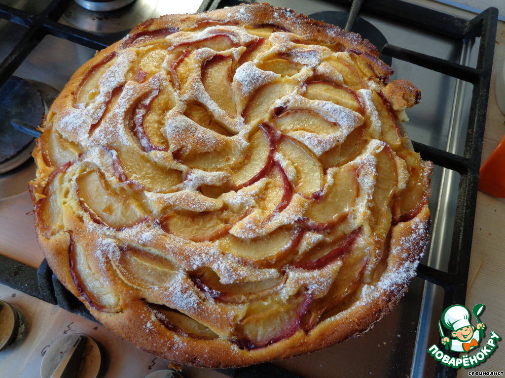 Пирог очень-очень вкусный, очень легко готовится и очень быстро съедается! И я очень вам его рекомендую! Его также можно приготовить с персиками, сливой и абрикосами. Рецепт от Рут Оливер.
