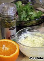 Постепенно добавляем сок апельсина, доводя заправку до консистенции нежного крема.