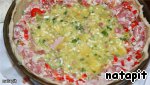Смешать нарезанную грудинку, 100 гр. красного перца и 50 г моцареллы натёртой на тёрку