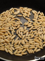 Пока пекутся перцы, на сухой сковороде подсушите кедровые орехи.