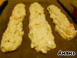Сформировать из теста 3 батончика, печь 25 - 30 минут при температуре 180 градусов, до румянца.