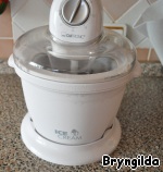 Перекладываю охлажденную смесь в мороженицу и включаю прибор на 25 минут.