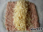 На крупной терке натираем сыр и половину выкладываем на середину фарша. Далее выкладываем отваренные макароны (желательно одним пучком) и посыпаем оставшимся сыром.