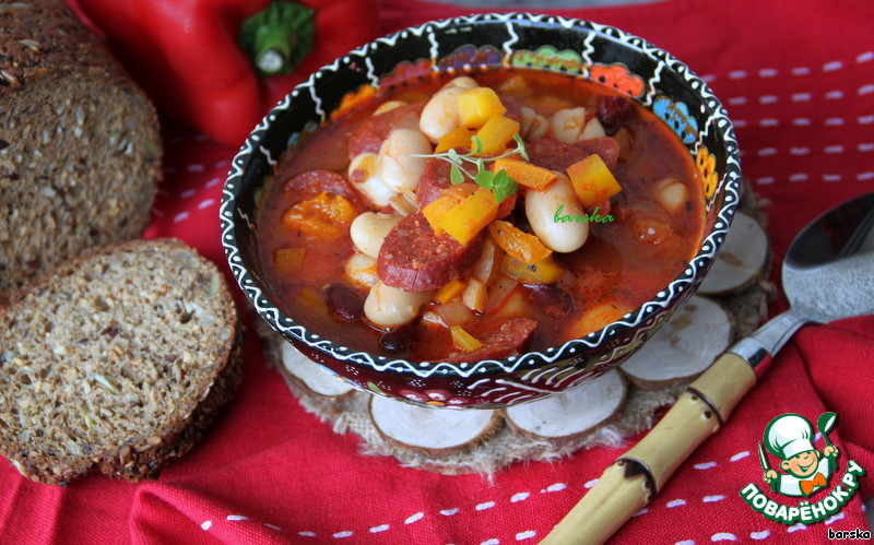 Sopa de pedra. Есть у братьев Гримм сказка, которая известна у нас меньше других. Речь в ней идет о том, как в деревню пришли незнакомцы, у которых с собой не было ничего, кроме котелка. Местные жители не больно-то хотели их кормить, но ушлые ребята пообещали приготовить для всех суп из камней. Вам ничего не напоминает этот сюжет? Ну, конечно же - каша из топора! У разных народов пройдохи готовят подобную еду из "деревяшек", "пуговиц" или "гвоздей", но... самое удивительное заключается в том, что суп из камней - это реальность! Суп, который я сегодня предлагаю вашему вниманию, готовят в небольшом португальском городке Алмейрин. В роли камней выступает фасоль.